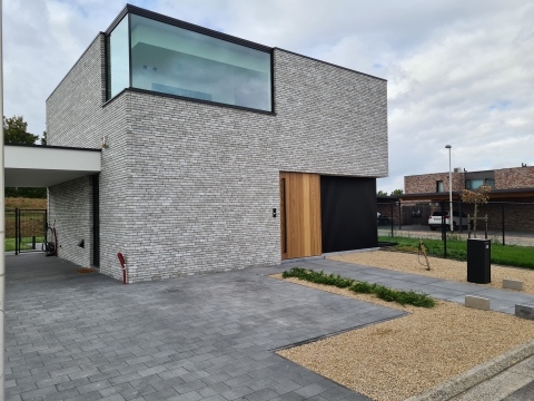 Bij deze moderne woning te Hasselt plaatsten we Alinel gevelbekleding type A.